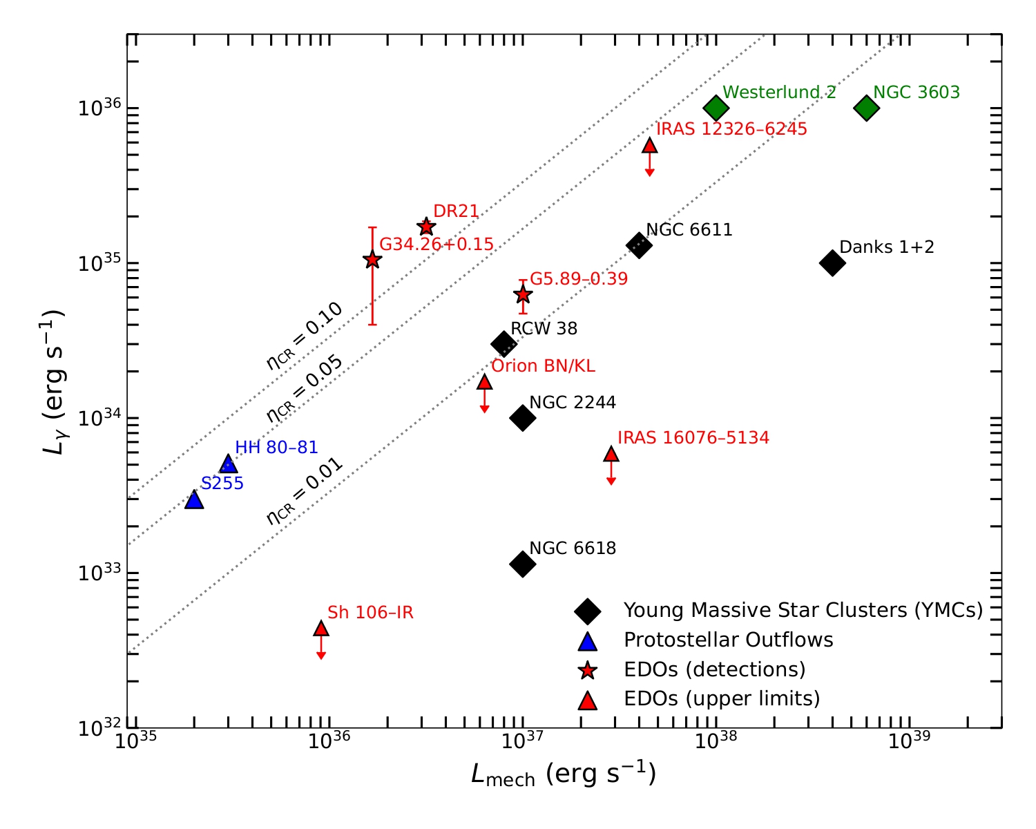 We also identify a new class of Fermi gamma-ray sources associated with explosive outflows, focusing on DR21 in the Cygnus-X star-forming complex, detected at 35σ significance. For this system, we quantify the acceleration efficiency of explosive outflows and evaluate their contribution to the overall galactic cosmic-ray budget. Overall, our results show that star-forming regions younger than ~3 Myr are efficient cosmic-ray accelerators, with important implications for galaxy simulations and for understanding the origin of galactic cosmic rays.